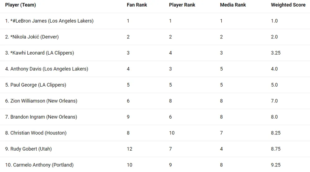 - LeBron James (PF, Los Angeles Lakers ; x17)