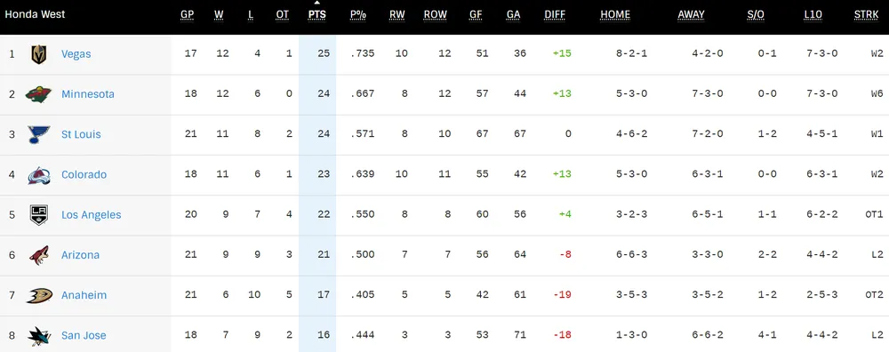 Après avoir battu Anaheim à deux reprises en fin de semaine dernière, Minnesota a réalisé un sans faut en remportant quatre nouveaux matchs. Face aux Sharks puis à l’Avalanche, le Wild a contrôlé et déroulé pour obtenir une large victoire (6-2). Face aux Kings pour une double confrontation ce week-end Minnesota n’a pas flanché et a renversé à deux reprises une franchise qui restait alors sur six succès consécutives. Six victoires d’affilée, c’est d’ailleurs la série actuelle du Wild qui ne laisse rien au hasard et a profité de sa bonne forme pour remonter à la deuxième place de la Division Ouest à un point des Golden Knights, alors même qu’ils en occupaient la sixième il y a tout juste une semaine.