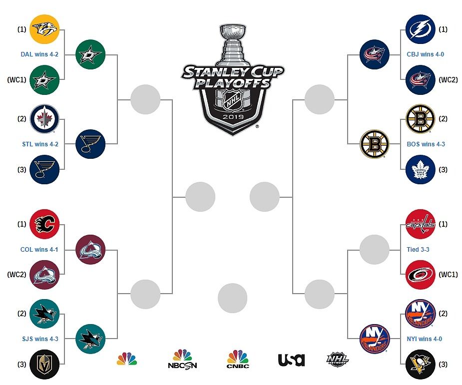 Après l’élimination de Tampa Bay champion de la section Atlantique, Calgary champion Pacifique, c’est autour du champion de la centrale Nashville de se faire éliminer en 6 matchs. Les Prédators ont encaissé un revers 2-1 en prolongation contre Dallas. Seul Washington champion de la section Métro est toujours dans le match contre les Hurricanes de la Carolina (3-3 dans la série).