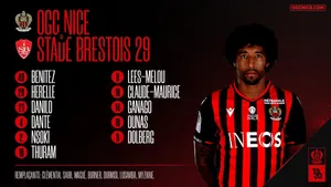 Patrick Vieira a choisi un 4-3-3 pour aujourd’hui. Thuram profite de l’absence de Cyprien pour être titulaire à côté de Lees–Melou. Claude–Maurice sera le 3ème homme au milieu de terrain, malgré son profil plus offensif que les deux autres. Dolberg sera donc accompagné d’Ounas et Ganago sur les ailes.