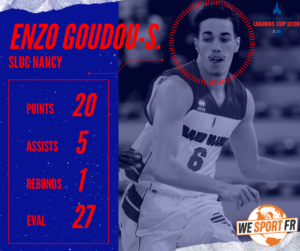 Un match qui va confirmer tout le potentiel de ce jeune joueur et qui va offrir une large victoire à Nancy à domicile (93-54). Ses performances au scoring et à l'évaluation sont pour l'instant ces deux records personnels. Malheureusement pour Nancy, l'aventure Leader's Cup va s'arrêter en demi-finale face à Antibes. Autre performance importante, il avait lors du quart de finale contre Lille, offert un total de 10 passes, son record chez les pros.