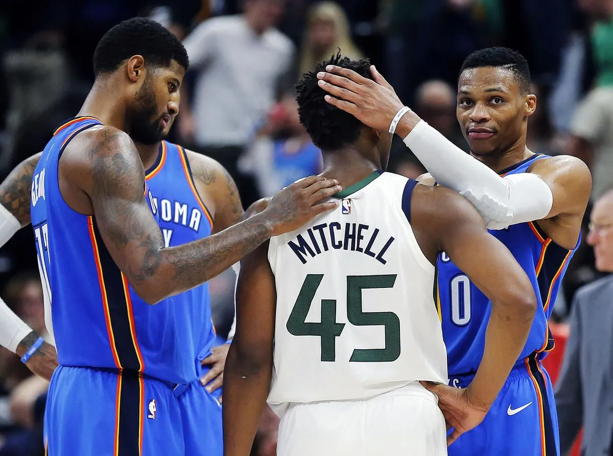 C’est OKC qui réalise la meilleure entame, et le 5 Westbrook Abrines PG Grant Adams pose énormément de difficultés à ses hôtes. Rythme lent, match serré, score égal à la mi-temps, 41 partout, mais OKC semble avoir la main et dominer légerement. Début du 3 eme QT, Mitchell commence fort et fait la totale à la défense Bleu et Blanche: Drives, and One, 3’s… Le Thunder ne peut pas proposer de vraie réponse malgré un Westbrook qui maintient sa team dans un écart relativement remontable (entre 5 et 11 points).+8 Jazz a l’entame du dernier quart temps. Utah doit impérativement garder ce petit matelas mais Oklahoma City revient petit à petit jusqu’à une possession d’écart. 30 secondes à jouer, balle Thunder, +3 Jazz. La tension est maximum, Russell n’est pas en réussite derrière l’arc mais une suite de rebonds offensifs maintient de Thunder en vie jusqu’a ce que PG tente d’obtenir une faute à 3 points, que les arbitres ne sifflent pas (il y avait bien faute), pas de derniere chance cette fois ci.