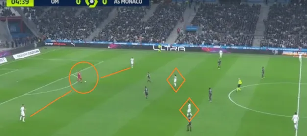 Lors de son passage à Marseille, Jorge Sampaoli a opté pour une approche défensive amenant rigueur et densité axiale. Lors des phases de possessions adverses, l’Argentin veut garder la supériorité numérique dans son camp et laisser son numéro 9 mettre la pression, parfois seul, sur les premiers relanceurs adverses. Toujours dans cette volonté de supériorité numérique dans les espaces dans lesquels se trouve le ballon. Lorsque ses équipes jouent bloc bas, Sampaoli laissent le moins d’espace possible entre les lignes.