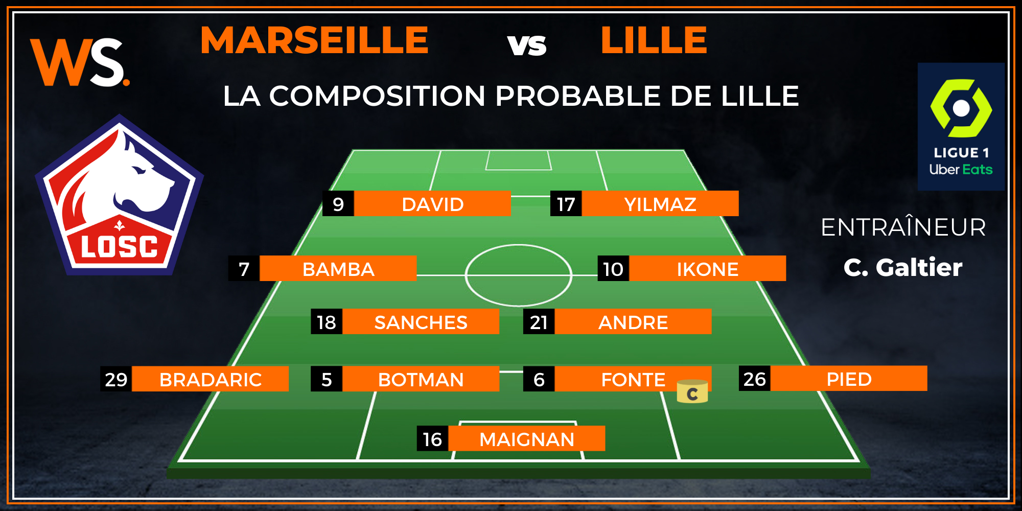 Cela étant dit, Marseille fait tout de même un bon début de saison. La victoire face au PSG n’est pas volée, ils ont joué avec leurs atouts et ont été efficace sur coups de pied arrêtés. Les qualités de passeur des français Payet, Rongier et Thauvin sont indéniables, tout comme la présence physique et défensive de Kamara. Marseille doit jouer avec ses atouts, les côtés : Amavi et Sakai défendent de mieux en mieux mais ont toujours su attaquer les couloirs et vu le niveau affiché par les latéraux Lillois, c’est vraiment une zone à exploiter. Avec des ailiers en faux pied, les débordements peuvent réellement être dangereux, surtout si Sanson ou Rongier se mêlent aux attaques. Amavi étant suspendu après son altercation avec Kurzawa, nous devrions voir Balerdi rejouer ou le retour de Sarr. Enfin, malgré les erreurs cette semaine, la défense Phocéenne est en générale très solide, très bon dans les duels, et devrait s’en sortir face à David, qui n’est pas encore tout à fait au niveau physiquement. La vraie menace viendra de Yilmaz et Bamba, capable de coups de génie.