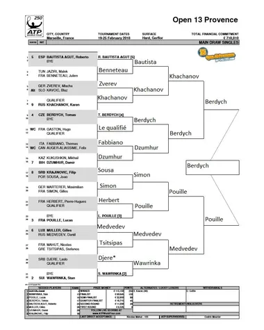 Lui aussi n’est pas le joueur le plus régulier du circuit. Très prometteur depuis maintenant quelques années, le Français peine à exploser, malgré quelques exploits. Passé à côté en Australie, où il a chuté au 1er tour contre Ruben Bemelmans, il a pourtant su relever la tête à Montpellier. Auteur d’une semaine très propre, il a bénéficié de l’abandon de Tsonga pour se hisser en finale. Finale qu’il a remportée brillamment face à Gasquet. Mais là encore, il n’a pas enchaîné à Rotterdam, en s’inclinant en 2 sets face à Rublev. Qui sait quel Lucas Pouille on retrouvera dans la cité phocéenne… en tout cas, à domicile, il sera forcément un grand favori.