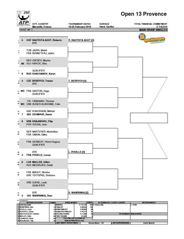 Hugo Gaston (1341eme) : Invité par l’organisation, le joueur de 17 ans a déjà fait parler de lui à l’Open d’Australie. Avec Clément Tabur, il a remporté le titre en double juniors, accompagné d’un quart de finale en simple. A Marseille, ce sera son baptême du feu, face à un joueur issu des qualifications.