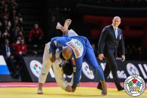 Enfin, il est immédiatement mis en danger contre le Japonais Kageura qui s’escrime à passer sous son centre de gravité. De son côté, le Français tente désespérément ses techniques de jambe, jusqu’au contre fatal et excellement réalisé du Nippon.