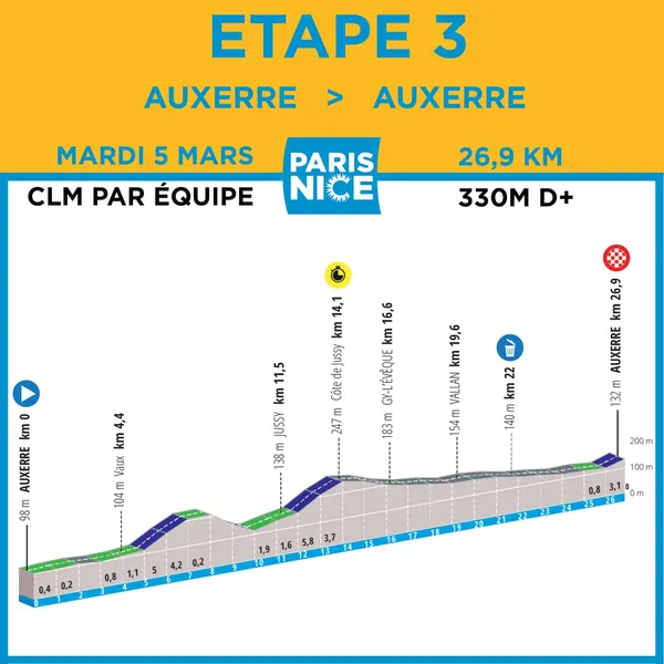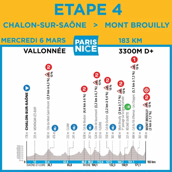 Qui succèdera à Tadej Pogacar en mars prochain sur la course au soleil ? Ce mardi, ASO a dévoilé le parcours de la 81ᵉ édition. Un départ depuis des Mureaux, dans les Yvelines, avant de s’enfoncer dans l’Est de la France. Deux premières assez plates favorisant les sprinteurs avant un contre-la-montre par équipe de 26,9 kilomètres autour de la ville d’Auxerre. Dès le lendemain, le peloton prendra la route du Mont Brouilly pour une étape vraiment casse pattes. PLus de 183 kilomètres pour 3300 mètres de dénivelé positif. Ce Paris-Nice sera une bonne répétition avant le Tour de France qui se conclura à Nice à cause des jeux Olympiques 2024.