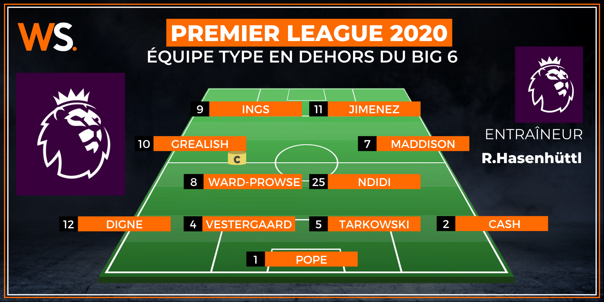 Alors aujourd’hui, on s’intéresse à ce championnat, ou plus exactement cette partie du championnat, qui ne fait pas officieusement partie du fameux « Big 6 ». Les Leicester, Everton, Southampton, Wolverhampton, Aston Villa etc. Nous allons essayer de composer une équipe type sur l’année 2020, du 1er janvier 2020 ou 31 décembre 2020 donc, avec des joueurs de ces équipes. Les ‘règles’ pour intégrer cette équipe sont les suivantes :