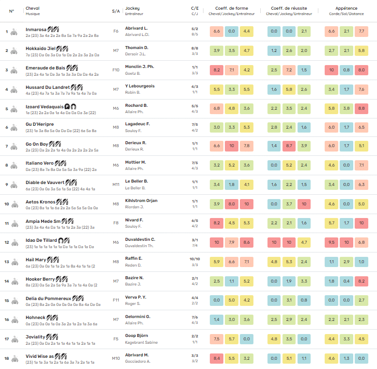 - Le “et pourquoi pas” : EMERAUDE DE BAIS (3) a obtenu sa qualification de fort belle manière lors du Prix de Bourgogne et entend bien surfer sur sa bonne forme pour surprendre son monde.
