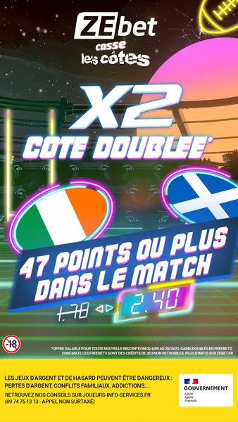 Sur Zebet, l’Irlande apparaît comme la grande favorite de cette rencontre avec une côte à 1,15. À l’inverse, les bookmakers ne croient pas à un exploit samedi soir, l’Écosse dispose d’une côte estimée à 4,00.