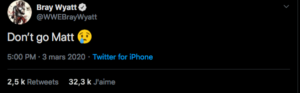 Son retour à la WWE aura fait plus de bruit que son départ. C’est désormais officiel Matt Hardy n’est plus lié à la fédération de Stamford. Il aura donc fini sur une rivalité avec Randy Orton puis plus rien, même pas de cérémonie, de quoi attrister Bray Wyatt. AEW? Réponse cette nuit.