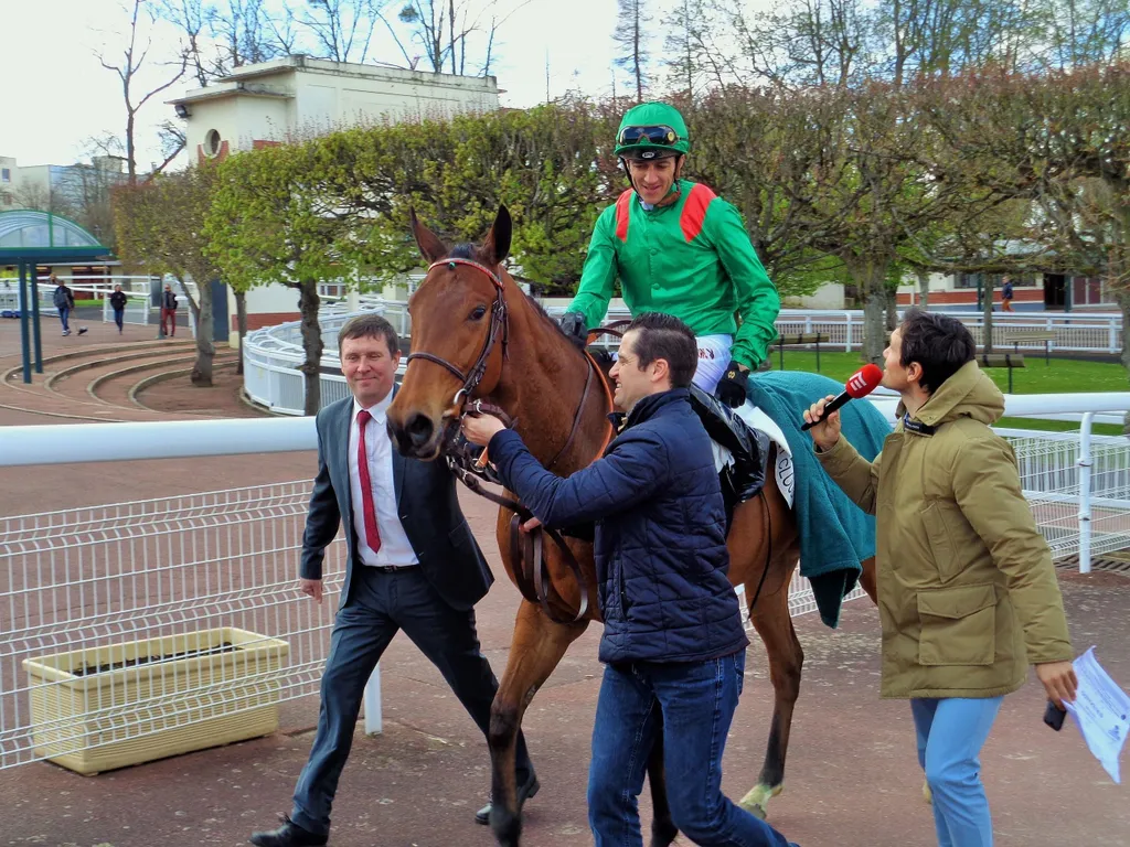 Remarqué au rond de présentation, et bien que coincé le long de la corde, le poulain arrive à se dégager de l’emprise du peloton et en quelques foulées vient ” crucifier ” le chouchou du public. Finir deuxième derrière un poulain entraîné par André Fabre, n’est pas une honte.