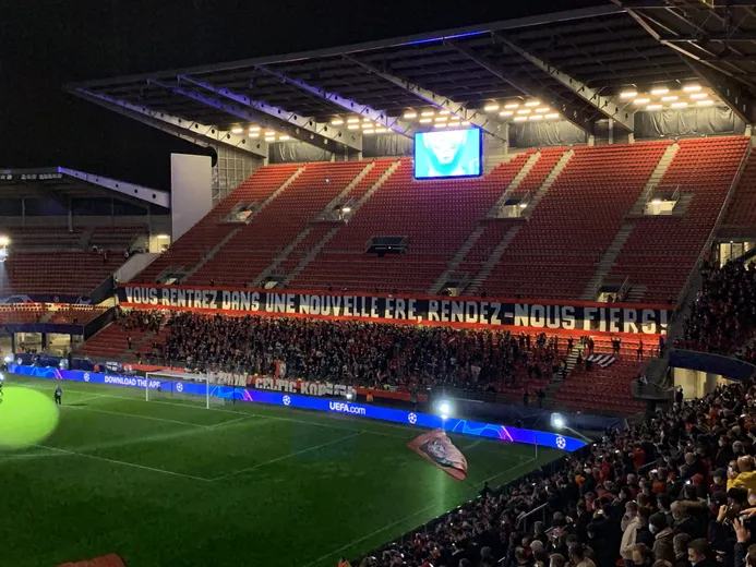 Peu après l’annonce des joueurs par le speaker, la musique de la Ligue des Champions retentissait enfin dans un Roazhon Park beaucoup trop chaud. Une banderole était déployée, annonçant la couleur : “Vous rentrez dans une nouvelle ère, rendez-nous fiers”. Les joueurs, entrant un à un sur la pelouse, devaient surement ressentir leur coeur battre à cent à l’heure.