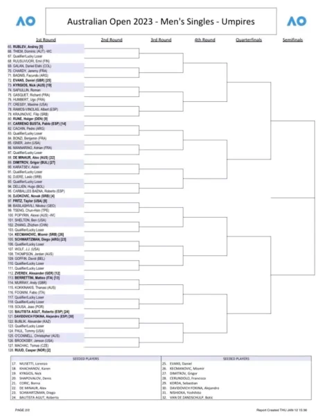 Le tableau hommes complet de l'Open d'Australie