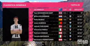 Une bataille entre Sunweb et Ineos se livre pour la victoire d’étape. Tao Geoghegan Hart remporte l’avant dernière-étape à Sestriere. Les deux hommes se trouvent exactement à 85:22:07 avec les bonifications prises. Jai Hindley prendra le maillot rose car son temps est favorable mais cela se joue au centième. Tout va se jouer demain entre Jai Hindley et Tao Geoghegan Hart désormais à égalité parfaite au classement général.
