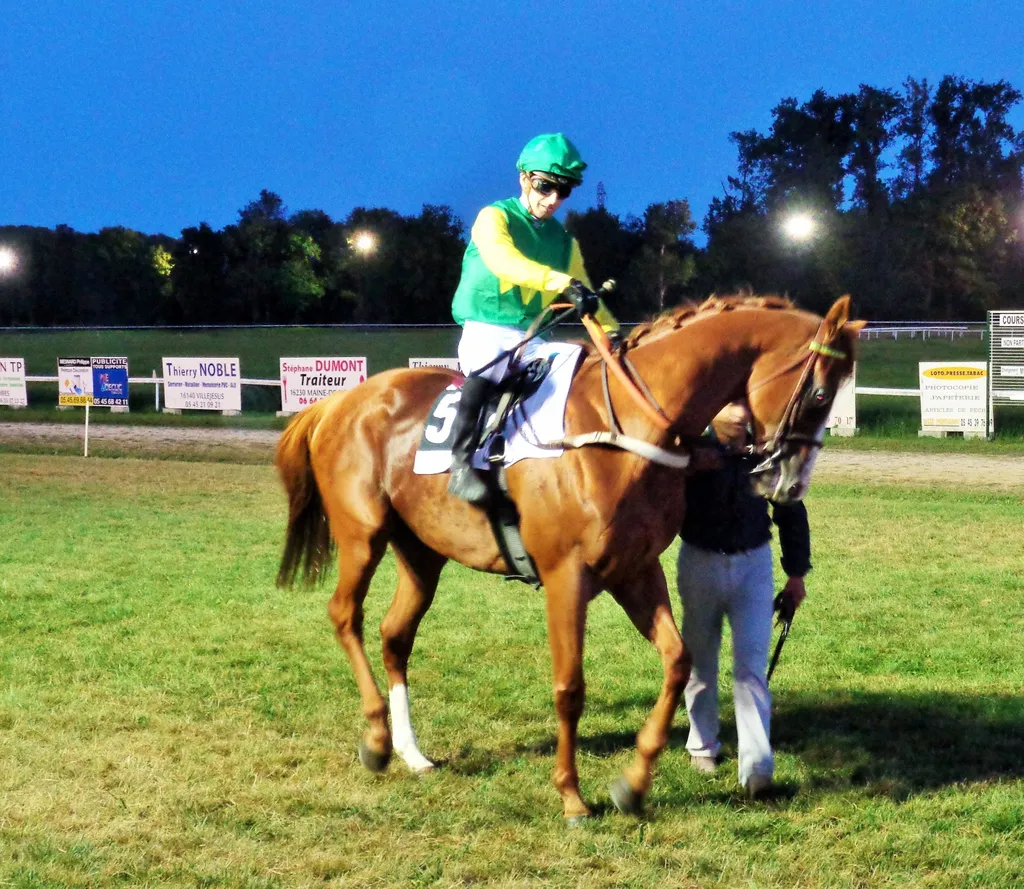 Partis vite, après un faux départ, les chevaux fusent sous les projecteurs (eh oui ) de l’hippodrome de Montignac-Charentes.
