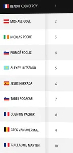 L’équipe Bora est toujours aux devants de la course au moment de l’ascension du Col de Peyronnenc. Le groupe de tête détient 2’32 d’avance sur Benoît Cosnefroy et Bennett à 10 km du sommet.