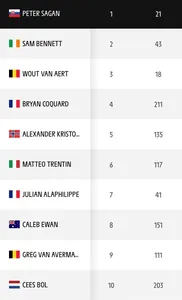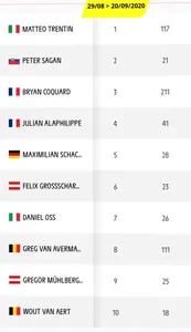 Le sprint intermédiaire est remporté par Matteo Trentin. Peter Sagan se classe second ce qui lui permet de reprendre virtuellement le maillot vert. Bryan Coquard finit à la troisième place juste devant Julian Alaphilippe qui termine 4e de ce sprint.
