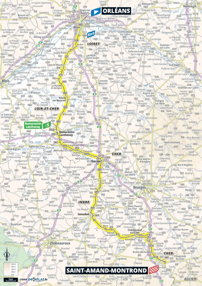 Cap vers le sud, ce mardi. Le peloton prendra la direction du département du Cher vers Saint-Amand-Montrond. Des grandes routes plates exposées au vent et une arrivée finale toute droite. Le peloton partira d’Orléans dans le Loiret. Un départ qui n’est pas non plus très technique. La route sera prise à partir de 13 h 25.