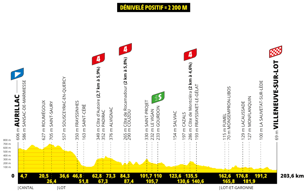 Les sprinteurs auront une nouvelle chance de s'imposer ce jeudi sur les routes du Tour de France. Une étape de plaine entre Aurillac et Villeneuve-sur-Lot. Après une étape intense sur le Lioran remportée par Jonas Vingegaard, le peloton et les favoris pourront souffler sur cette étape de transition. Les coureurs de cette 111ᵉ édition vont se diriger tranquillement vers les Pyrénées, attraction de la fin de la semaine.
