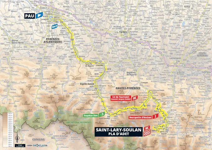 Les sprints sont terminés, place à la haute montagne ce week-end sur cette 111ᵉ édition. Pour la fin de cette 2ᵉ semaine du Tour de France 2024, le peloton a rendez-vous en enfer. 4000 mètres de dénivelé positif entre Pau et Saint-Lary-Soulan. Une première journée dans les Pyrénées qui aura son importance. Le jour sans est interdit. La veille, le peloton a vécu une étape compliquée entre Agen et Pau remportée par Jasper Philipsen. Le Belge s’est offert une deuxième victoire d’étape cette année.