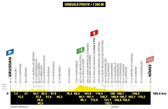 Un profil d’étape de transition ce mardi sur les routes du Tour de France. Une étape plate avec une seule côte répertoriée sur le parcours en 4ᵉ catégorie. La Côte de Fambetou (1,2 kilomètre à 5% de moyenne). Au total, c’est plus de 188,6 kilomètres à parcourir. Seul le vent pourrait venir jouer les troubles fêtes sur cette étape. Pour rappel lors du Tour de France 2019, une bordure due au vent avait été fatale à Thibaut Pinot.