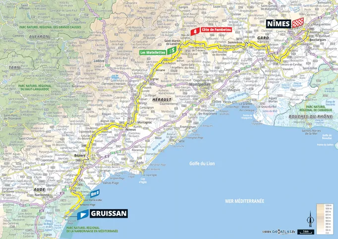Rendez-vous sur le bord de la Méditerranée pour cette 16ᵉ étape du Tour de France. Au programme, la traversée de l’Hérault pour arriver dans le Gard à Nîmes. Dans le final, deux virages à 90 séparent deux longues lignes droites. Peu de doute sur le sprint massif de fin de journée. Le peloton partira de Gruissan dans le Parc Naturel Régional de la Narbonnaise dans l’Aude. Un départ donné à 13 h 30.