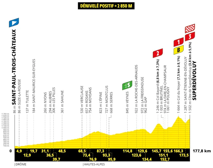 Le peloton arrive dans les Alpes ce mercredi pour la 17ᵉ étape de ce Tour de France 2024. Une journée entre Saint-Paul-Trois-Châteaux et Superdévoluy (178 km) avec plus de 2850 mètres de dénivelé positif. Une journée idéale pour les baroudeurs.