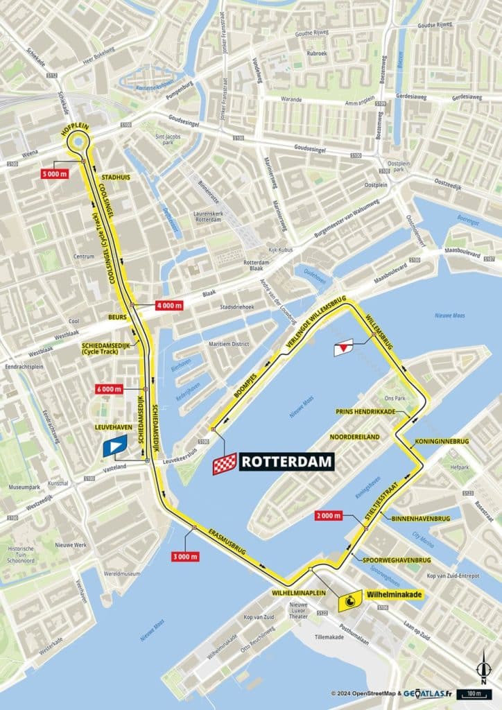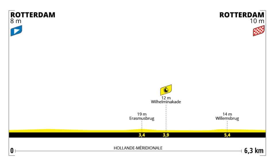 Contre-la-montre plat dans les rues de Rotterdam ce mardi avec aucune difficulté majeure. Un point intermédiaire sera placé après 3,9 kilomètres.