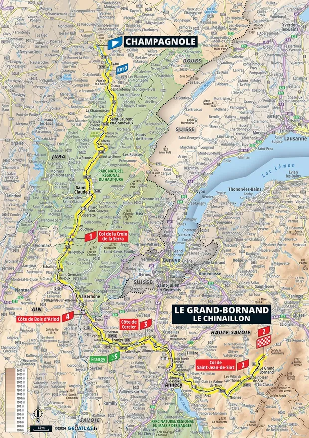 Direction le parc naturel régional du Haut-Jura ce samedi qui mènera le peloton vers Annecy puis le Grand Bornand en Haute-Savoie. Un départ donné à 10 h 50 pour une arrivée prévue à 15 h 30.