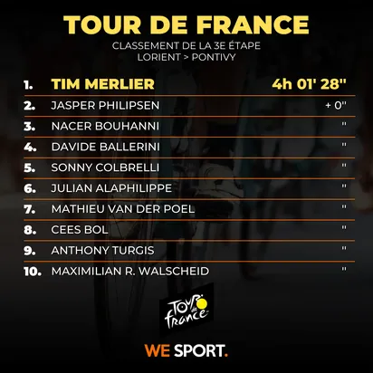 Ce lundi se déroulait la 3e étape du Tour de France, longue de 182,9 km, allant de Lorient à Pontivy. Une étape au profil différent des deux premières avec une arrivée réservée aux sprinteurs. C’est Tim Merlier qui s’est imposé après un final assez spécial.