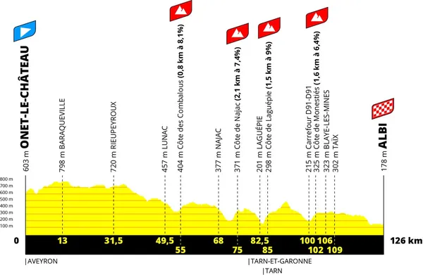 - Etape 5 : 126km, Onet-le-Chàteau – Albi