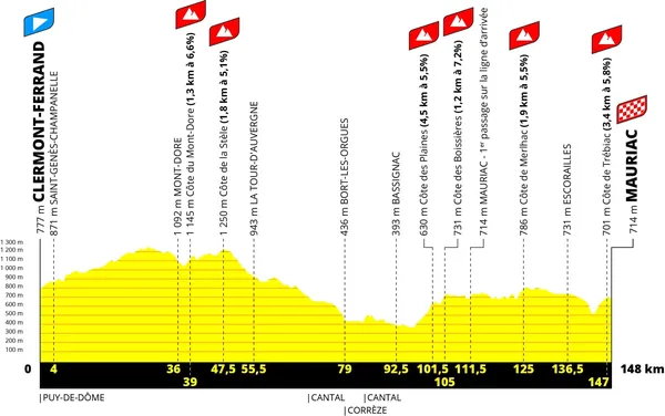 - Etape 2 : 148km, Clermont-Ferrand – Mauriac