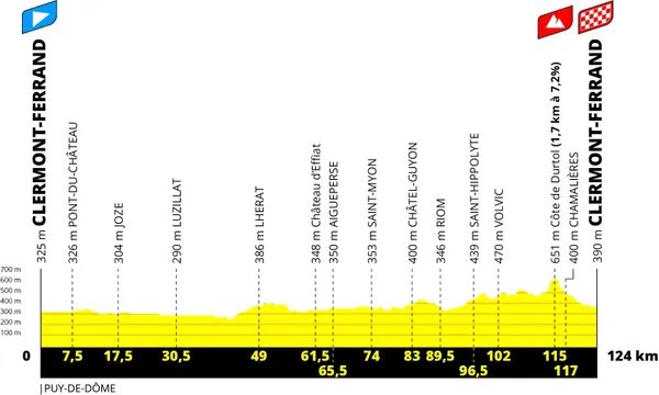 - Etape 1 : 124km, Clermont-Ferrand – Clermont-Ferrand