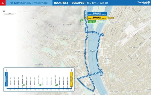 Budapest célèbre le 150e anniversaire de sa fondation en 2023 – le Tour de Hongrie se joint à la célébration avec une étape finale de 150 km dans la capitale. Le départ de la course sera donné sur la rive nord du Danube, à côté de la piscine Császár-Komjádi. Le circuit de près de 10 kilomètres passe par les attractions touristiques les plus populaires de Budapest : Le château de Buda, le Parlement, le pont des chaînes, la colline de Gellért et l'île Margaret. Seules les routes sinueuses de Budapest peuvent empêcher les sprinters de se battre pour une nouvelle victoire et le maillot vert.