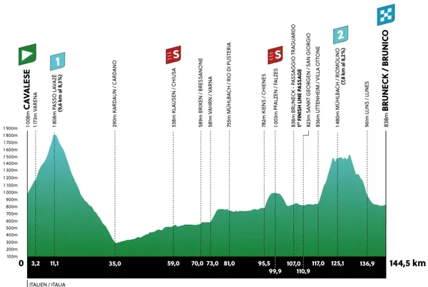 Etape 5 (vendredi 21 avril) : Cavalese – Bruneck/Brunico, 144.5 km