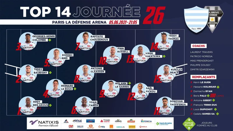 - Le Racing 92 en demi-finales si… il bat Brive avec bonus offensif ET La Rochelle ou Toulouse perd sans bonus défensif.