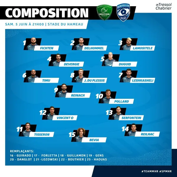 Voici la composition de votre équipe pour la dernière journée de TOP14 ce samedi à 21H05 face au Stade Français.#combat #attaque #défense #soutien #votresoutien , ces quelques mots ont dicté la semaine de travail de nos joueurs.