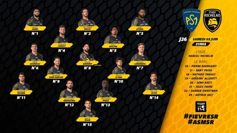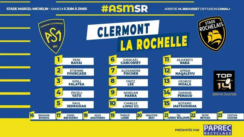 Autre choc décisif dans le haut de tableau entre le Stade rochelais (2e) et l’ASM (5e) au stade Marcel-Michelin de Clermont. Finalistes malheureux de la Champions Cup, les Maritimes espèrent encore soulever un trophée cette saison et ont l’occasion de valider leur ticket pour les demi-finales. De leur côté, les Auvergnats devront défendre leur place en barrages face à une meute de poursuivants.