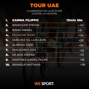 La deuxième étape du UAE Tour est un contre-la-montre d’une distance de 13 km. Une épreuve remportée par le champion du monde dans la discipline : Filippo Ganna.