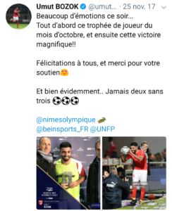 À l’aube de la reprise du championnat Bozok cherchera encore à être le meilleur malgré lui. Des gestes techniques élégants, un esprit collectif, Umut Bozok est un joueur qu'on ne peut que aimer. Toujours souriant, disponible pour ses supporters, pianiste officiel du Nîmes Olympique, le sérial buteur n’a pas fini de faire parler de lui. Nous lui souhaitons une très bonne deuxième partie de saison !