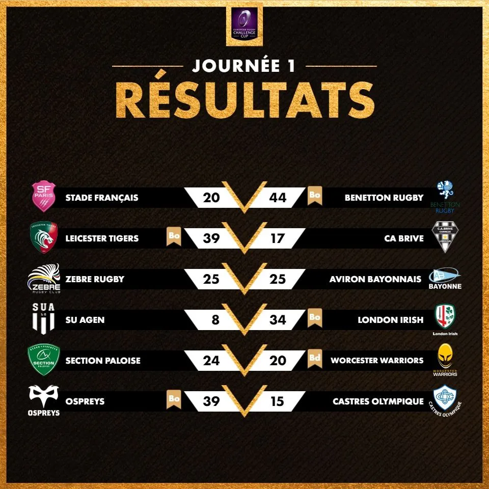 Les résultats de la première journée de Challenge Cup :