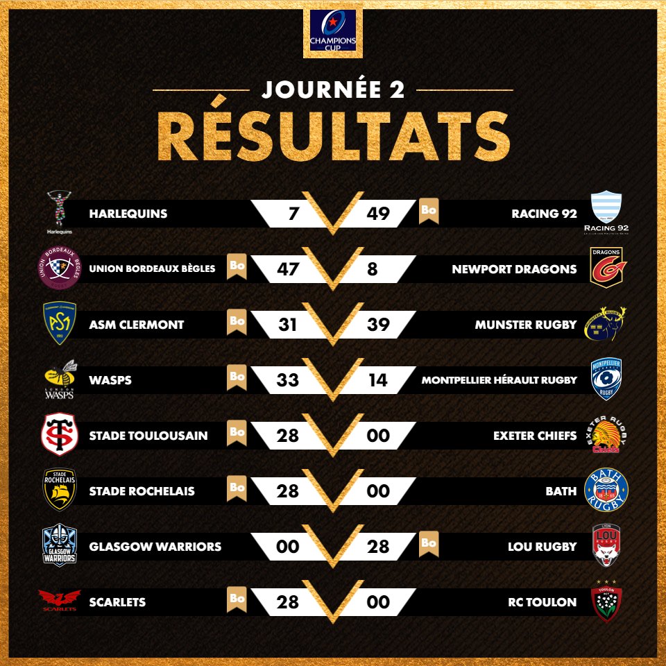Concernant le match de la Poule A entre les Scarlets et le RC Toulon, les Scarlets ont été considérés vainqueurs et se sont vu attribuer cinq points de classement avec un score de 28-0https://t.co/6PJnKL3GeY