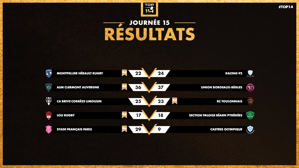 Les résultats du Top 14 :