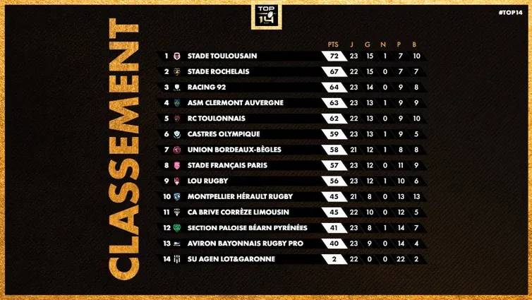 À l’aube de cette fin de saison, la course pour les phases finales du Top 14 s’annonce épique. Ce week-end, le RC Toulon, l’Union Bordeaux Bègles, le Castres Olympique et le Stade français se sont replacés. Voici ce qu’il ne fallait pas rater de cette 23e journée de Top 14.
