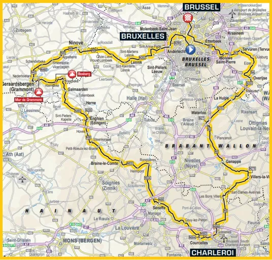 Puis, après ce mont, les coureurs prendront la route vers Charleroi en allant vers le sud. Dans le Hainaut, les coureurs passeront par les villes d’Enghien, Braine-le-Comte, Seneffe et Courcelles.