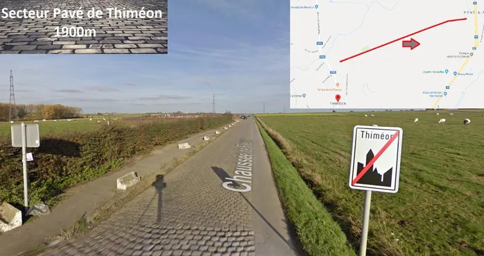 Par la suite, après être passé en périphérie de Charleroi, le peloton tournera à gauche pour aller vers le nord et entrer dans le Brabant Wallon en passant par un secteur pavé de Thiméon. Ce secteur sera long de 1900 mètres, pas trop dur et en ligne droite. Le sprint intermédiaire sera placé cinq kilomètres plus loin pour les premiers points pour le maillot vert.