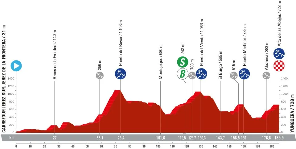 Après une étape destinée aux sprinteurs ce mercredi la Vuelta va retrouver de l’altitude ce jeudi. Direction Yunquera pour une journée de 185,5 kilomètres de vélo dans des paysages escarpés. Quatre ascensions sont au programme ce jeudi avec un début d’hostilité au kilomètre 58 avec la montée du Perto Del Boyar classée en première catégorie. S’ensuivra une longue portion de plat et de descente avant le triptyque final de 3 montées classées en 3ᵉ catégorie. L’étape se terminera au sommet de la montée de l’Alto de las Abejas (8,9 kilomètres à 3,9% de moyenne).