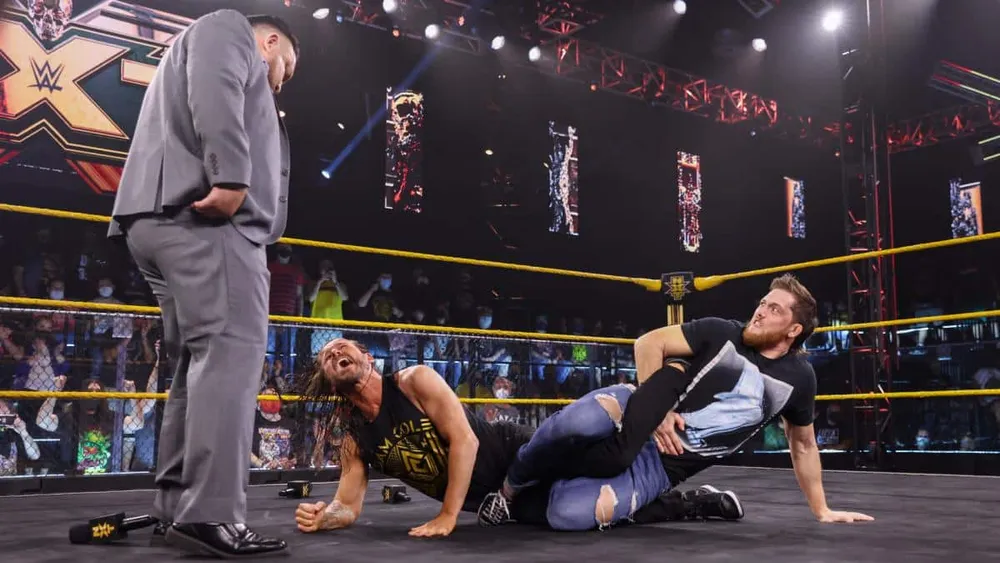 À peine arrivé, Kross a été attaqué par Gargano. Envoyé dans les portes métalliques, Kross a appelé Johnny Gargano sur le ring et là encore, le membre de The Way a attaqué Kross suite à une aide d’Austin Theory qui a attaqué le champion par surprise. Cela s’est toutefois vite retourné contre lui puisqu’une fois Theory K.O, Kross a attaqué Gargano en dehors du ring. Bien heureusement pour Johnny Wrestling, Kross n’a pas eu le temps de se servir des escaliers en acier grâce aux agents de sécurité et Samoa Joe. La dernière attaque eut lieu sur le parking et encore une fois, c’est Austin Theory qui se jeta dans la gueule du loup en attaquant en premier le champion. Theory vite mis hors course, Gargano attaqua Kross dans le dos et lui donna des coups de portières ; insuffisant pour le mettre KO, lui qui s’est vite relevé pour lui porter sa prise de soumission. Après un énorme coup de coude dans la nuque de Theory, Kross est remonté avec Scarlett dans la voiture. Le champion a bien essayé de percuter Gargano, mais Samoa Joe l’a relevé à temps.